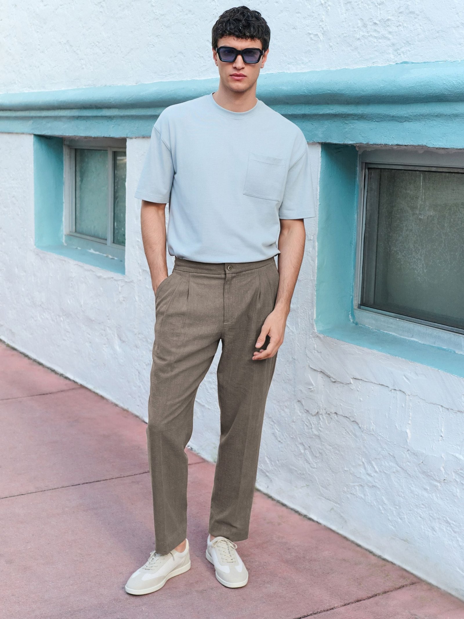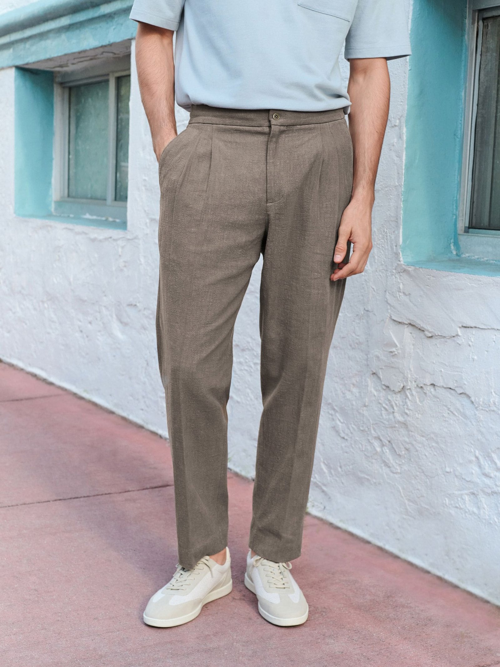 Features : Linen-look fabric, internal drawcord, smart-casual trousers